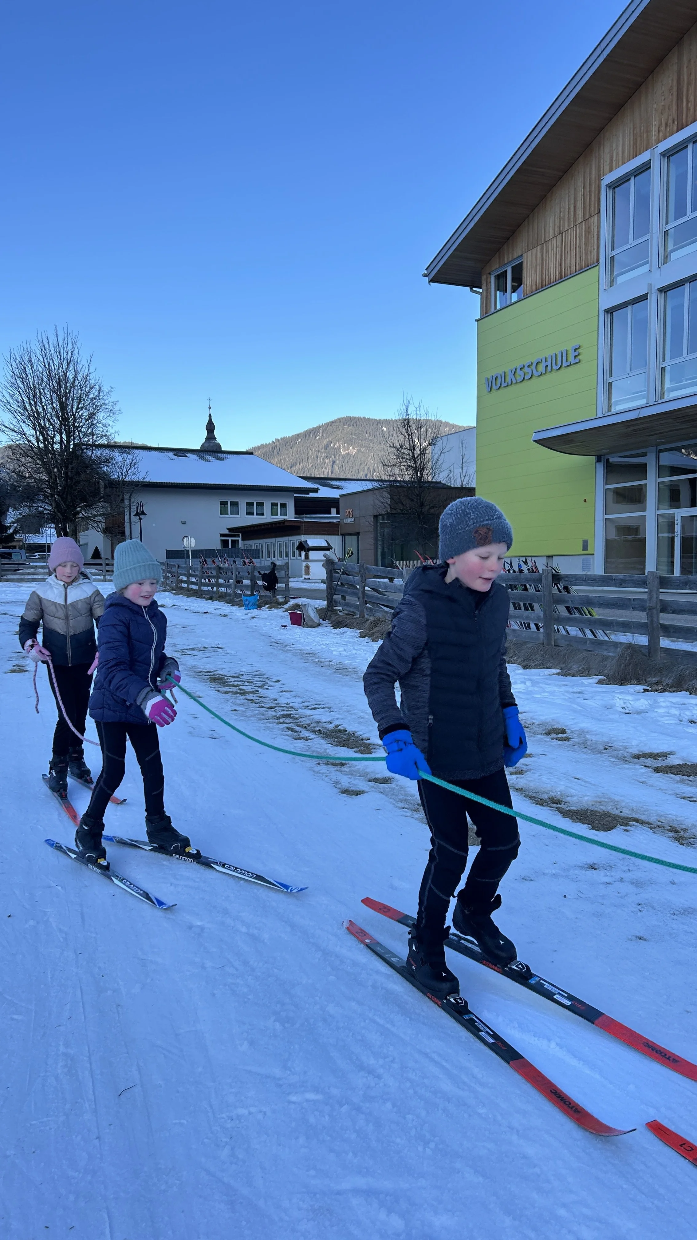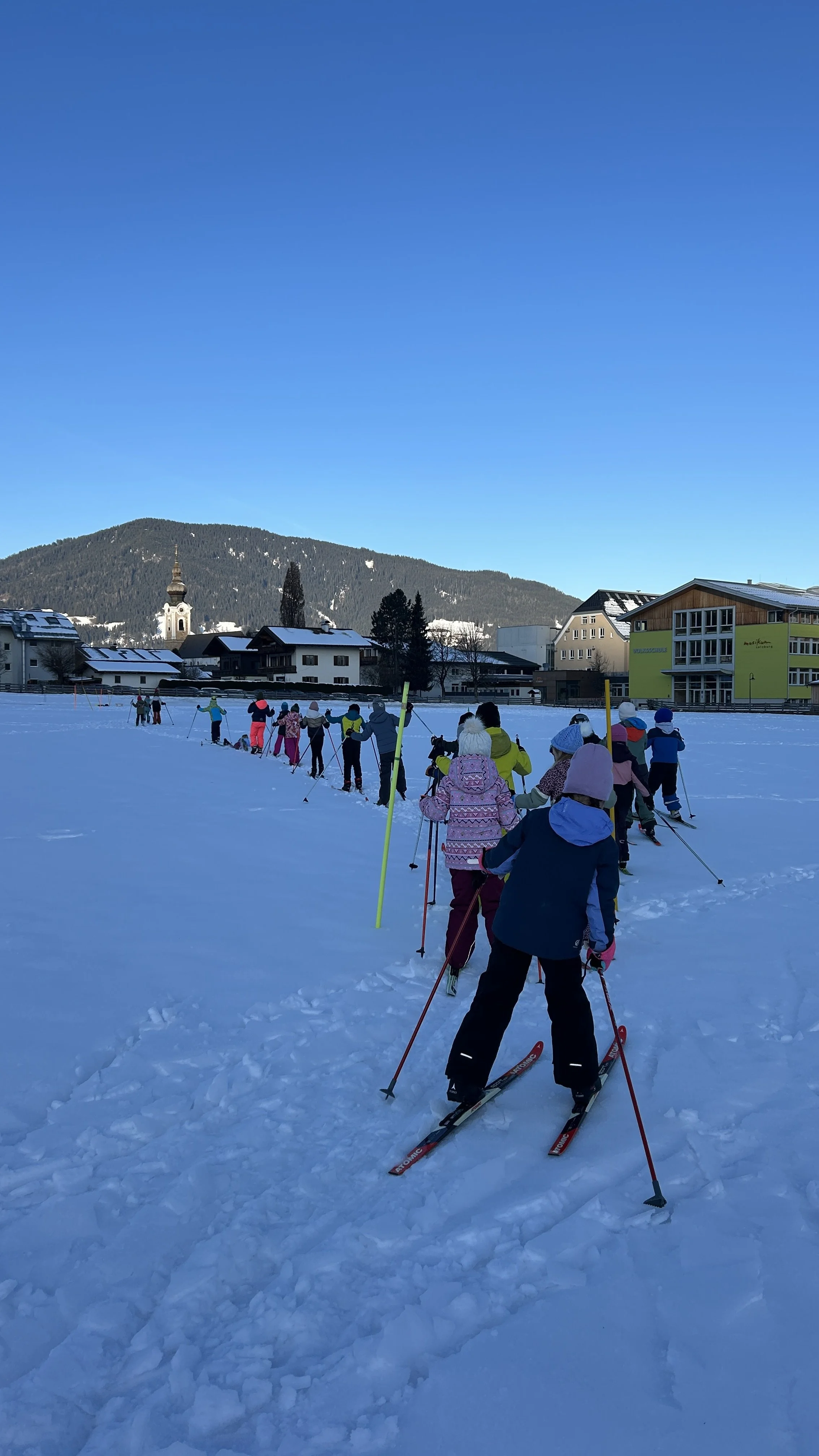 Der Winter bietet an der VS Altenmarkt viele Möglichkeiten für Bewegung im Freien. Neben dem Eislaufen gehört auch das Langlaufen fix zum Sportprogramm. Besonders praktisch ist die Loipe direkt vor der Schule, die von den Kindern mit großer Freude genutzt wird.